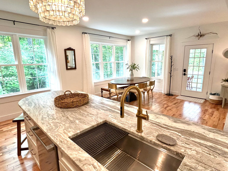 White Gable Cottage was thoughtfully designed with the comfort & ease of our guests in mind, from the luxury furnishing throughout to the convenient washer/dryer. The home features rustic hardwood & marble tile floors. The foyer doubles as a mudroom ready to greet you when you come in from your outdoor adventures whether it be a day at the beach, skiing, or cycling. The home has beach towels on hand, games, books, & children’s toys. There are 3 TVs throughout, in the great room, primary bedroom, & 2nd bedroom.